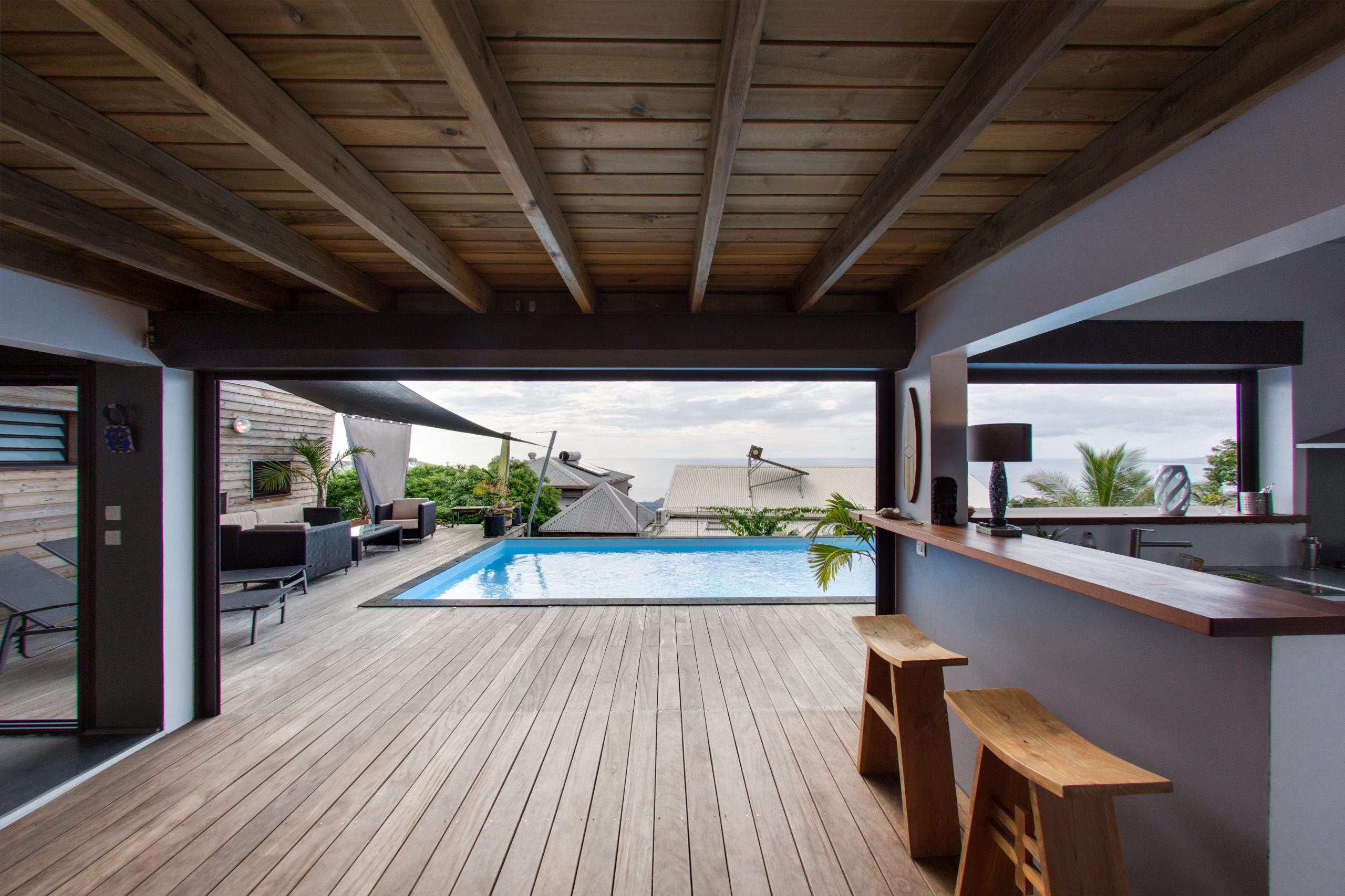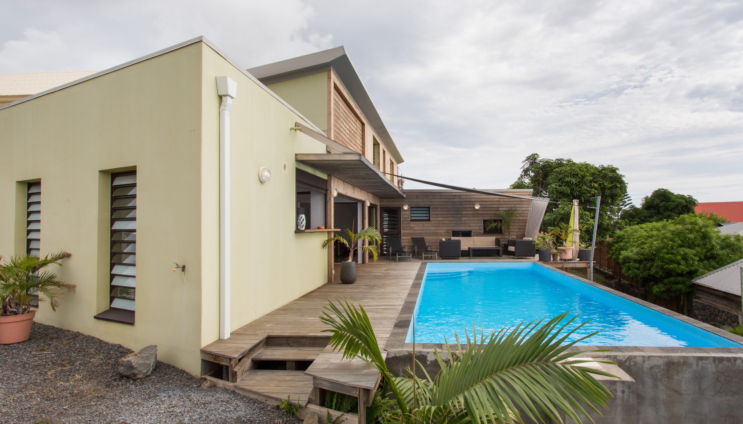 Une case pour jouir sans entrave de la magnifique vue sur la côte Ouest de la Réunion ! Sur une structure mixte bois+béton, une maison tout en longueur, bien ventilée naturellement, grâce à une organisation traversante. Protection solaire et matériaux à faible inertie font le reste pour le confort optimum des habitants.